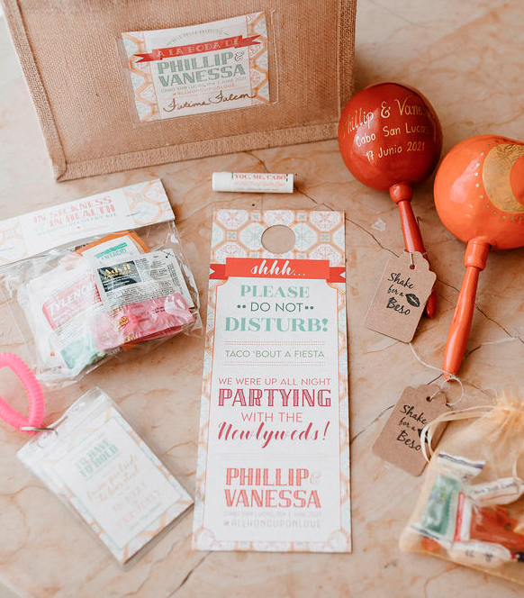 Wedding Welcome Bags Example on Terracota Tones and including maracas